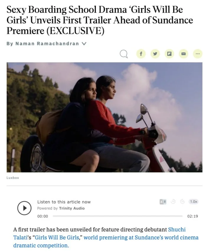 “With precision and sensitivity, first-time feature director Shuchi Talati invites us into the lives of characters she intimately understands and deciphers, allowing us to experience adolescent sexual discovery with all its conflicting emotions. Preeti Panigrahi embodies Mira with nuanced sincerity, her hesitation transforming into confidence when she’s swept up by Kesav Binoy Kiran’s charismatic, wry Sri. Kani Kusruti, meanwhile, gives a brilliant performance as Mira’s cunning mother, Anila, setting up the perfect game of mother-daughter chess as these women descend into a struggle that threatens their affection for each other. Beautifully exploring the origins of empowerment and the limits of trust, Girls Will Be Girls celebrates the freedom of self-acceptance and the solace of female agency, sensuality, and physicality.”